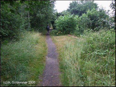 Der Grund für das abrupte Ende des Bahntrassenausbaus ist wohl das Naturschutzgebiet Wachtelberg-Mühlbachtal. Hier ist sogar das Schieben von Fahrrädern verboten!
