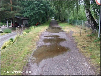 Der Abschnitt bis Grimma ist nicht asphaltiert, der Gewitterregen hat den Radweg in ein Planschbecken verwandelt.