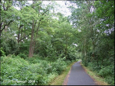 Der Verlauf der Bahnlinie ist von hieraus noch gut zu erkennen