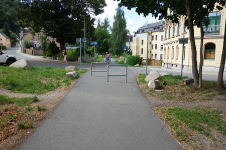 Der Startpunkt des Radwegs liegt am anderen (südlichen) Muldeufer in der Rudolf-Breitscheid-Straße.
