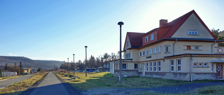 Auf der Bahnhofsstraße entlang am Bahndamm, nur 350 m entfernt steht das Gebäude des alten Bahnhofs Oechsen, heute als Wohnhaus genutzt