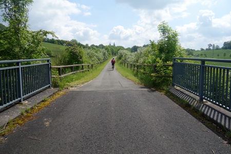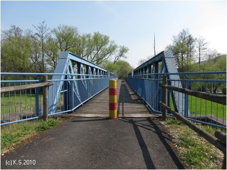 Über einen Wegedurchlass, dann über die Brücke an der Sängerwiese bei Bermbach, 3 Bögen, 32 m lang und 8 m hoch.