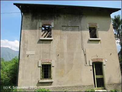 Bahnhof Seghe/Velo d'Astico, heute ausgebaut zum Restaurant. Noch zu lesen: Fahrkartenschalter und Eingang zum Stationschef.