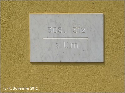 Die Höhenangabe am Bahnhofsgebäude ist genau, hier kann man sein GPS-Gerät eichen: 308,512 m über dem Meer. Zur Stadtmitte geht es bergauf, aber ein Abstecher zu Marktplatz müsste noch drin sein!