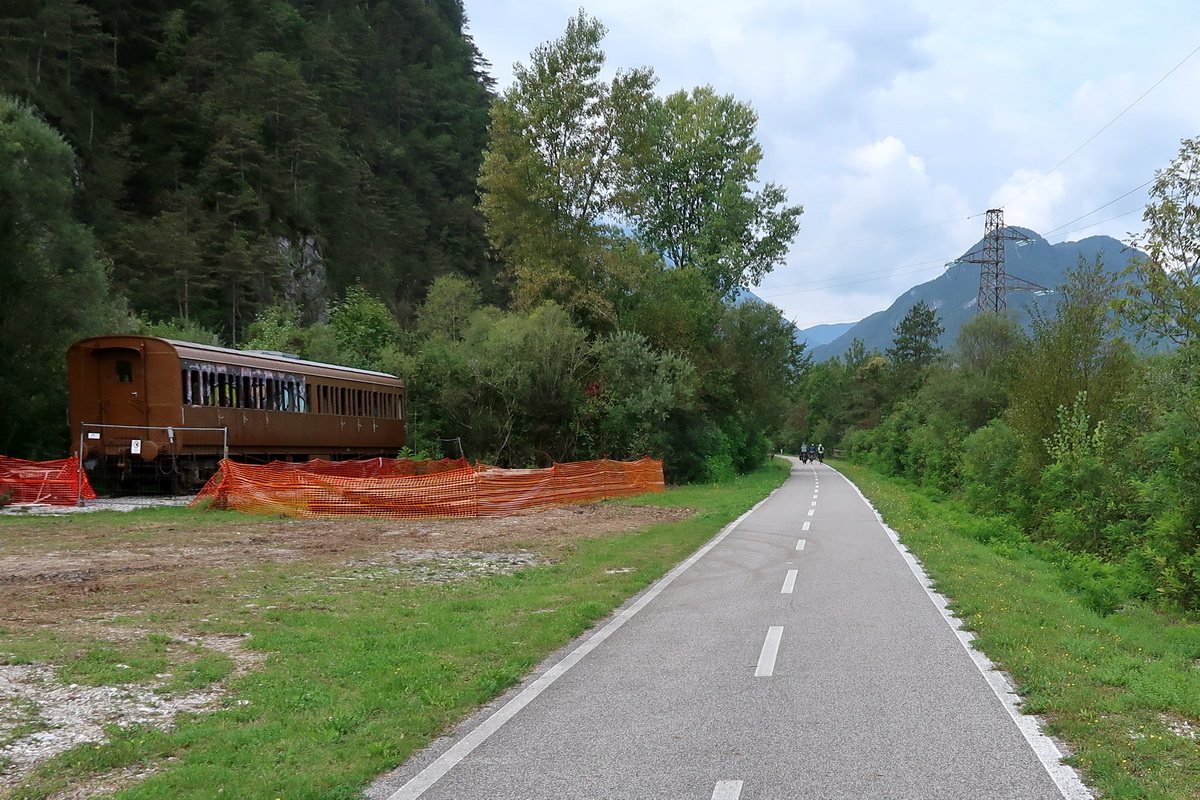 Der Bahntrassenradweg ist Teil des Alpe-Adria Radwegs von Salzburg nach Grado (ca. 410 km) und wird inzwischen von einigen kommerziellen Anbietern von Fahrradtouren genutzt, entsprechend häufig trifft man auch auf größere Radlergruppen. Auch Rennradler nutzen die Strecke. Auf dieser Webseite wird nur der Bahntrassenabschnitt beschrieben. Wir haben diesen Abschnitt erstmals 2011 befahren, damals waren noch mehrere Lücken vorhanden, teilweise im Ausbau. Zuletzt wurde der Abschnitt Resiutta - Carnia auf der Trasse fertiggestellt, in einem der Tunnel war 2025 die Beleuchtung im September 2025 defekt. Aus historischen Gründen beginnen wir die Fahrt am Bahnhof Carnia , etwa 1 km nördlich beginnt die asphaltierte Strecke auf der ehemaligen Bahntrasse. Seit 2011 sind einige Hindernisse beseitigt worden, weitere Tunnel wurden befahrbar gemacht und die Infrastruktur verbessert. Im Abschnitt Pontebba - Laglesie San Leopoldo wird zur Zeit ein weiterer Abschnitt auf der Trasse ausgebaut ( Jahr 2025, Umleitung eingerichtet!)