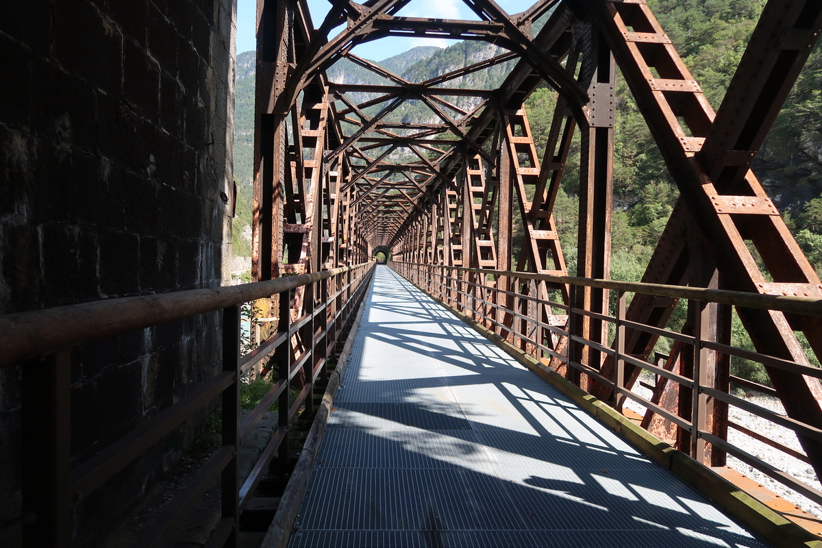 Das große Eisenbahn-Viadukt an der östlichen Tunnelausfahrt der SS13 bei Coccau erreicht man über eine Nebenstraße, die den Tunnel mit einer großen Schleife umgeht. Der Autotunnel ist für Radfahrer gesperrt.
