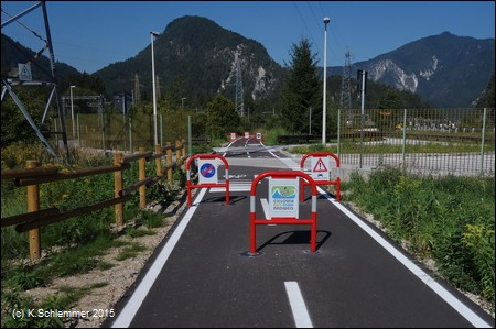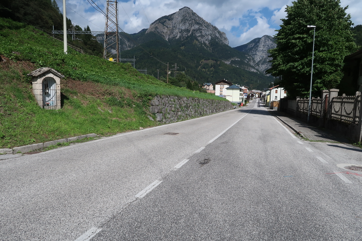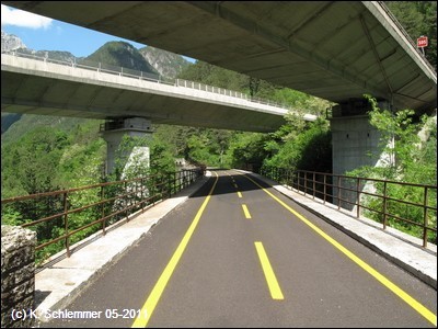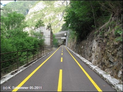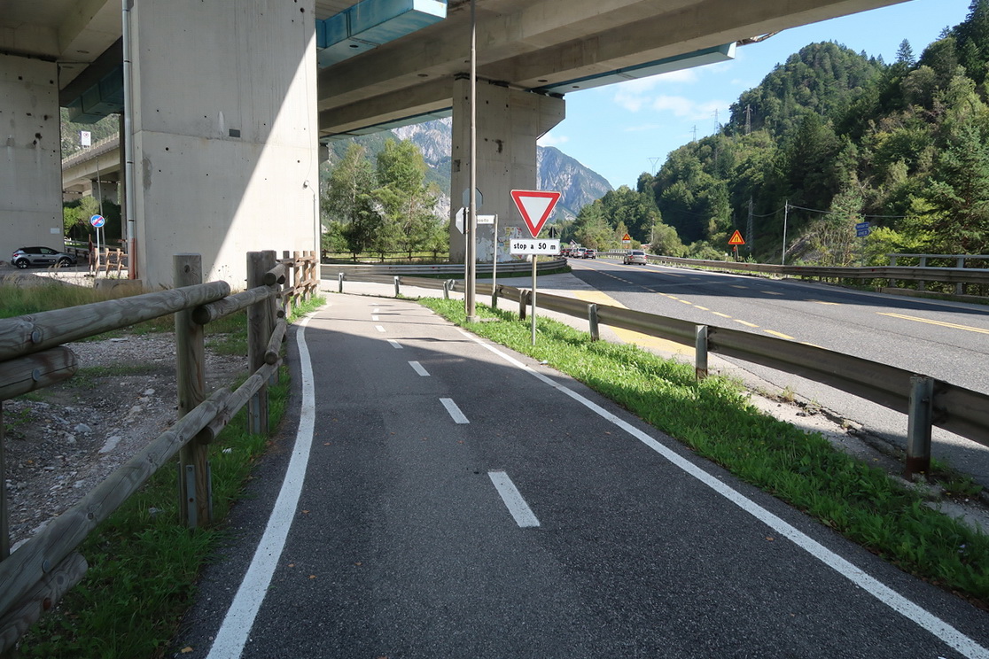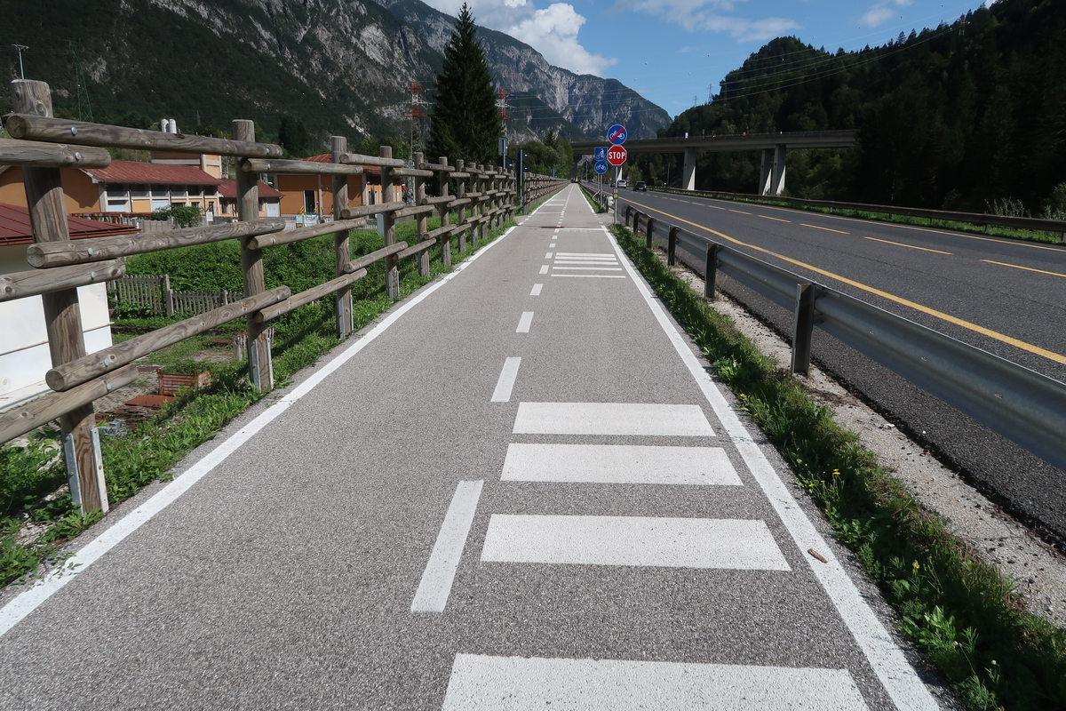 Weiter nach Valbruna, die Strecke ist relativ neu. Der Radweg kreuzt die Straße.