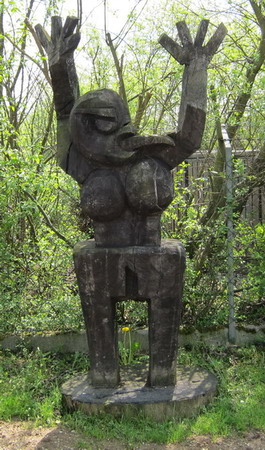 Monumentale Skulpturen bei Kilometer 4: "Freiheit - Liebe - Tod". Weiter talwärts, vor Bad Gandersheim, überqueren wir nochmal eine Brücke.