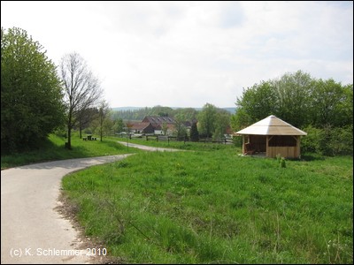 Am Rastplatz "alter Bahnhof" zweigt der Radweg auf die Trasse ab. Ein neues Rasthäuschen ist noch nicht ganz fertig.