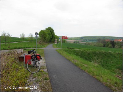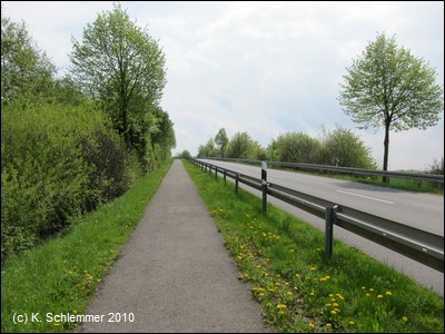 Auf dem Radweg entlang der Straße ist schnell der Scheitelpunkt der Strecke bei Lamspringe erreicht. .