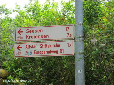 Wir folgen der Beschilderung des "Radweg zur Kunst" Richtung Lamspringe. Zunächst geht es abseits der Bahntrasse bergauf nach Sehlem.