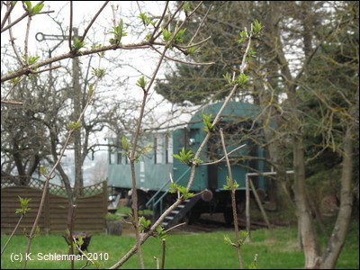 Früher einmal ein "Schlafwagen" am Bahnhof Pfalzfeld (Stand 2020: Übernachtungen leider nicht mehr möglich)