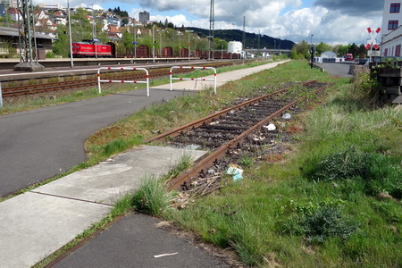 Das Werksgleis der Fa. Börner muss überquert werden. Die Cantusbahn wartet schon auf ihren Einsatz.
