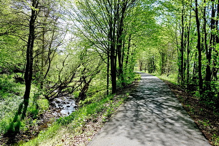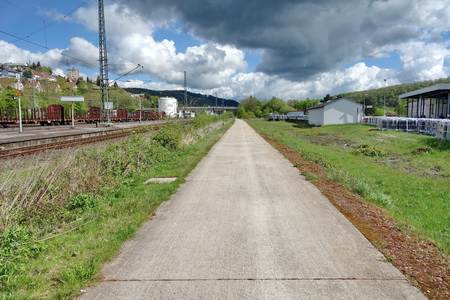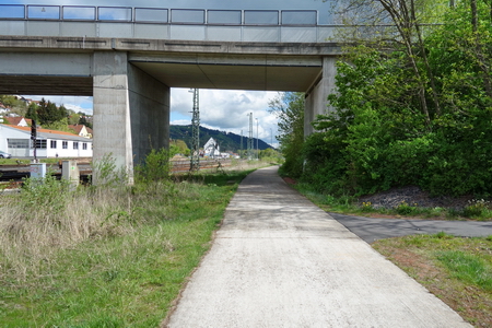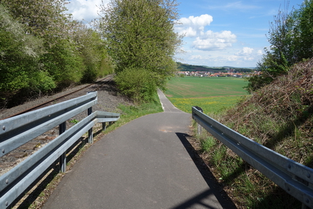 Parallel zur aktiven Bahnstrecke Richtung Kassel wurde der Radweg auf der alten Trasse bis zur Sondershäuser Brücke betoniert.
