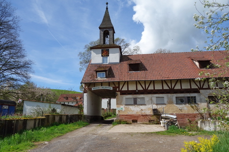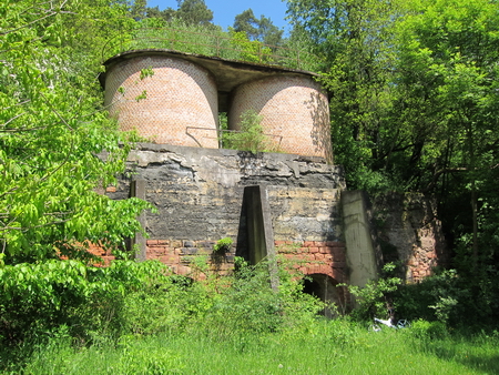 An dem alten Gebäude zweigte ein Gleis zum Kalkwerk ab. Hier wurden die Steine gebrochen und die Waggons befüllt. Eine Feldbahn führte hinauf zum Steinbruch. Die Brennöfen, etwa einen halben Kilometer entfernt, sind noch vorhanden. Gegenüber des Eingangstores zum Gutshof zweigt der R1 ab in nördlicher Richtung nach Ludwigsau-Friedlos.