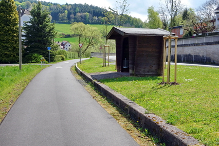 Auch eine Wartehütte ist noch an Ort und Stelle, auch wenn das Stationsschild fehlt.
