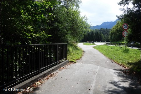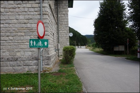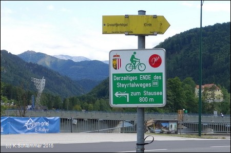 Wir haben diesen Startpunkt gewählt, weil der Steyrradweg bisher am Stausee ca. 500 m weiter südlich endet. Die Weiterfahrt von dort ist nur auf der Straße möglich, der Ausbau des Radwegs ist in Arbeit (bis 2018). Auch der Weg am Stausee entlang führt nicht weiter.