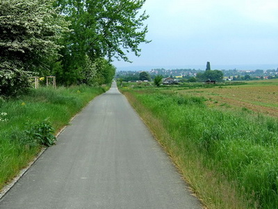 Am Horizont taucht schon die Stadt Mühlhausen auf. Nur wenige Reste der alten Bahntrasse sind noch zu sehen.