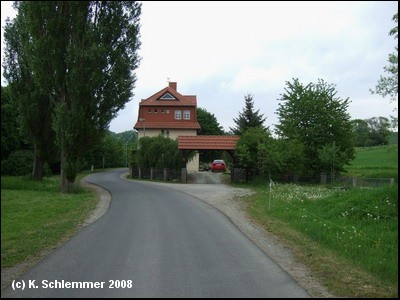In Langula führt die Wegweisung entgegen der Fahrtrichtung durch die Einbahnstraße. Der alte Bahnhof Langula ist heute ein Wohnhaus.