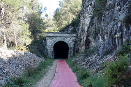 Der Radweg durchquert das Gebiet des Parque Natural del Carrascal de la Font Roja. Vor dem nächsten Tunnel (1013 m lang) geht es über das Viadukt "Sant Antoni".