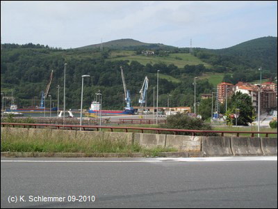 An einem Park entlang erreicht man die Hafenregion der Bucht von Pasaia, wo früher das Eisenerz aus den Minen von Arditurri verladen wurde. Der Radweg kreuzt die Straße und führt weiter in Richtung Errentería.