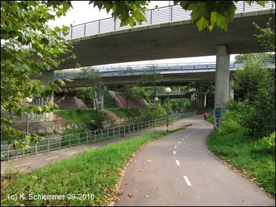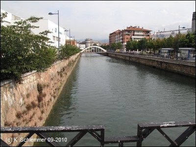 Immer am Fluss entlang, dann durch einen kleinen Park und schließlich unter den Brücken der Autobahn A8 hindurch. Der Radweg ist gut ausgebaut, eine Beschilderung nach Arditurri konnten wir bisher nicht entdecken.
