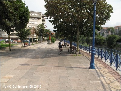 In einem Rechtsknick geht es Richtung Fluss. Der Oiartzun durchschneidet die Stadt, wir folgen dem Radweg am rechten Flussufer Richtung Berge.