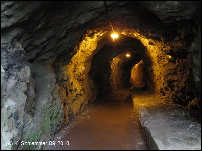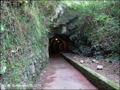 Die Wände und die Decke des nächsten Tunnels wurden ausgekleidet. Es ist reichlich feucht in diesem Gemäuer! Wir sind fast am Ziel.