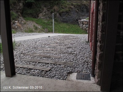 Schön gestaltet ist der ganze Bereich, zum Beispiel mit den alten Schwellen der Minenbahn.