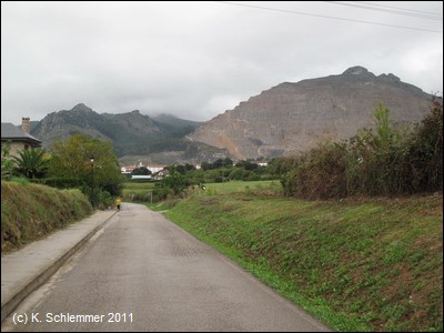 In Otañes : Auch ein Abschnitt des Jakobswegs führte durch diese Tal. Es geht weiter aufwärts auf der Trasse.