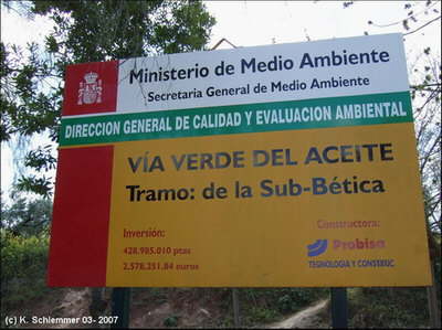 Die Wegweiser und die Infotafeln erklären die Anbindung an die Stadt Puente Genil, 6 km über Nebenstraßen und Feldwege. Diese Strecke sind wir (aus Zeitgründen) noch nicht gefahren.