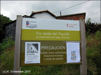 Die Vía Verde del Piquillo ist ein nur 2,2 km langer Radweg auf der Trasse einer alten Minenbahn. Er führt direkt an der Steilküste des Atlantik zwischen der alten Verladestation (Cargadero) von Piquillo zur Grube Cobarón. Wie auch bei den anderen Minenbahnen um die Stadt Castro Urdiales wurde auf dieser Strecke Eisenerz aus den Minen der Region zu den Cargaderos an der Küste transportiert und auf die Schiffe Richtung Holland und England verladen. Hierbei überquert der Radweg die Grenze zwischen Kantabrien und dem Baskenland (Viskaya). Auch ein Abschnitt des Jakobsweg (Donejakue Bidea) benutzt diese Strecke. Diese Vía Verde ist nur mit Einschränkungen zu begehen: Bei Sturm oder anderen widrigen Wetterbedingungen sollte man sich hier nicht aufhalten. Ein abgerutscher Berghang und ein Gerüst am einzigen Tunnel der Strecke belegen, dass die Felsabhänge instabil sind und auch Menschen zu Schaden kommen können (Warntafelam Beginn des Radwegs). Überhaupt ist die Strecke eher für eine Wanderung geeignet als für eine Radtour. Belohnt wird der Besucher durch eine exponierte Route direkt am Hang mit atemberaubenden Blicken über den Rand der Steilküste des Atlantik.