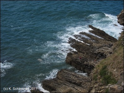 Vorsicht Steilküste und Steinschlag! Zwei Tafeln warnen vor den Risiken..