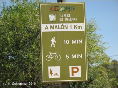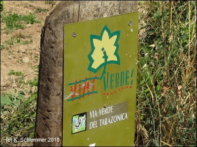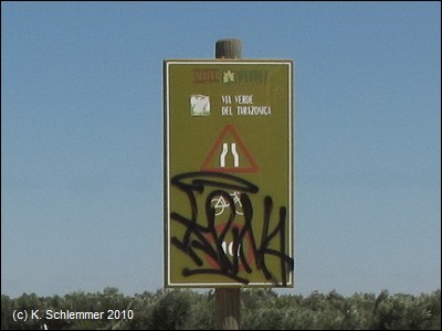 Die Beschilderung ist Vías- Verdes- konform und gut zu erkennen, wenn sie nicht durch Vandalismus zertstört ist.
