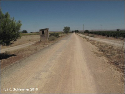 Die Fahrbahn ist halbseitig asphaltiert und mit Splitt bedeckt. Wir erreichen den verlassenen Bahnhof von Murchante, der wieder etwas außerhalb des Ortes liegt.