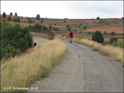 Es geht wieder eimal über eine Brücke, die Strecke der RENFE begleitet uns linker Hand. Ein Weg kreuzt die Trasse.