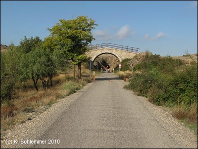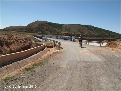 Bei Kilometer 55 vor Ojos Negros wird der Rio Alfambra überquert. Zuerst geht es unter der Straße durch, dann auf der alten Brücke über den Fluss.