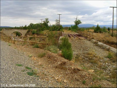 Eine kleine Bücke führt über einen trockenen Bachlauf. Wieder wird die Bahnstrecke Valencia-Zaragaza überquert, eine Metallbrücke wurde hierfür gebaut.