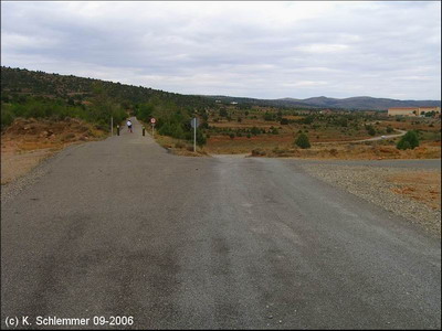 Nächster Zwischenstopp ist La Puebla de Valverde, ein kleiner Ort mit knapp 500 Einwohnern. Die Strecke ist gut ausgebaut, die Querwege haben Stoppschilder!