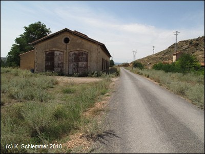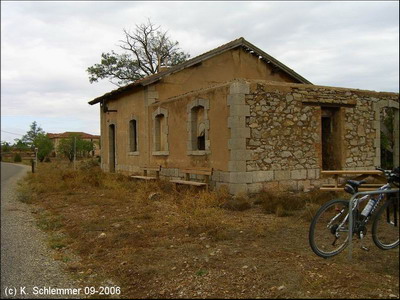 Dieses verfallene Gemäuer ist der Bahnhof von Rubielos de Mora, ein Häuschen für den Streckenwärter ist auch vorhanden.