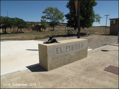 Vor La Puebla de Valverde kommen wir wieder in den Bereich der Autobahn, teilweise ist die Trasse zerstört. Der Radweg wurde neu gestaltet. Über eine Brücke mit blauen Geländern kann man die nahe Tankstelle erreichen, wenn man Proviant benötigt. Dann geht es weiter Richtung Passhöhe.