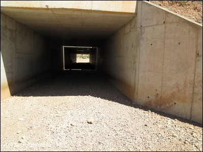 Nach kurzer Fahrt entlang der Autobahn (hier wurde die Trasse zerstört, der Radweg und musste neu gebaut werden) geht es durch eine Unterführung. Hier ist mit schlechter Wegstrecke durch Geröll auf der Fahrbahn und Überflutung zu rechnen! Ein neues Schild wurde bereits wieder herausgerissen!