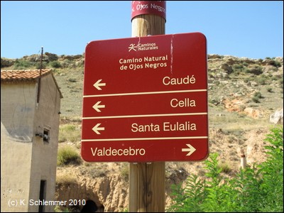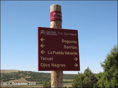Danach zweigt der Weg entlag des Rio Alfambra ab, der auch als Vía Verde de Valfambra (= Val de Alfambra)beschrieben ist. Die Beschilderung ist neu.