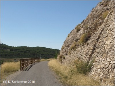 Der Barranco de Peñaflor wird überquert: „Puente Chispo“ heißt das Viadukt von 89 m Länge, 22 m hoch. Auch die RENFE überquert die Schlucht auf der Paralleltrasse.