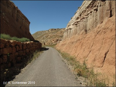 Ein Felsentor ist aus dem Berg herausgehauen. Noch einmal geht es durch einen tiefen Einschnitt.