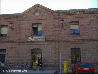 In Sarrión halten die modernen Triebzüge der RENFE. Der aktive Bahnhof der Parallelstrecke liegt auf der anderen Seite des Radwegs etwas außerhalb des Ortes.