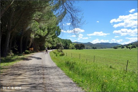 Der Radweg hat deutlich an Höhe gewonnen. Durch eine breite Schlucht...