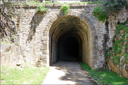 Dann hinab und über den Fluss Huéznar. Hier trifft man auf die Trasse der ehemaligen Minenbahn.