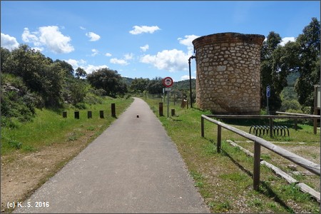 Nicht direkt vor den Toren Sevillas liegt dieser Radweg: Gut 88 km fährt man auf kurvigen Straßendurch die Berge der Region! Die Anreise mit der Bahn ist möglich, wenn da nur nicht der ausgedünnte Fahrplan wäre: (Fahrplan vom 07.02.2016): Der Regionalexpress von Sevilla (Bhf. Santa Justa) nach Mérida und Cáceres fährt einmal am Tag um 17:20 ab und erreicht nach 1 1/4 Stunden den Bahnhof Cazalla-Constantina. Der Transport der Räder im Regional-Express muss wahrscheinlich angemeldet werden (vorher abklären!) In Gegenrichtung fuhren 2016 ganze 2 Züge, 10:08 und 11:24 ab Cazalla nach Sevilla. Die Cercanias (Nahverkehr) der Linie C3 ab Sevilla S.J. fahren 3x am Tag in beiden Richtungen, die Zeiten sind im Internet abrufbar (http://www.redtransporte.com/sevilla/cercanias-renfe/horarios.html, - ohne Gewähr, Stand: Sommer 2016) Vom Bahnhof Cazalla aus sind es 1,4 km zum Beginn des Radwegs am Parkplatz (Wegweiser). Der Ort Cazalla de la Sierra ist 8,5 km vom Bahnhof entfernt, der Ort Constantina 12,5 km.