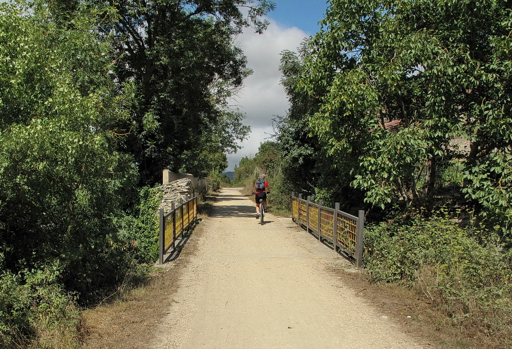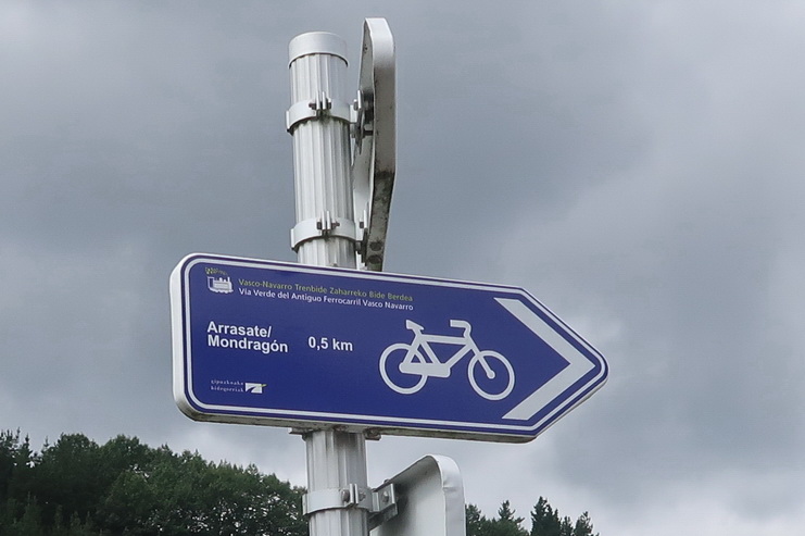 Nach Bilbao noch 59 km auf der Straße, wir fahren lieber auf der ehemaligen Bahntrasse weiter. Die Beschilderung als Vía Verde Vasco-Navarro zeigt uns den Weg.